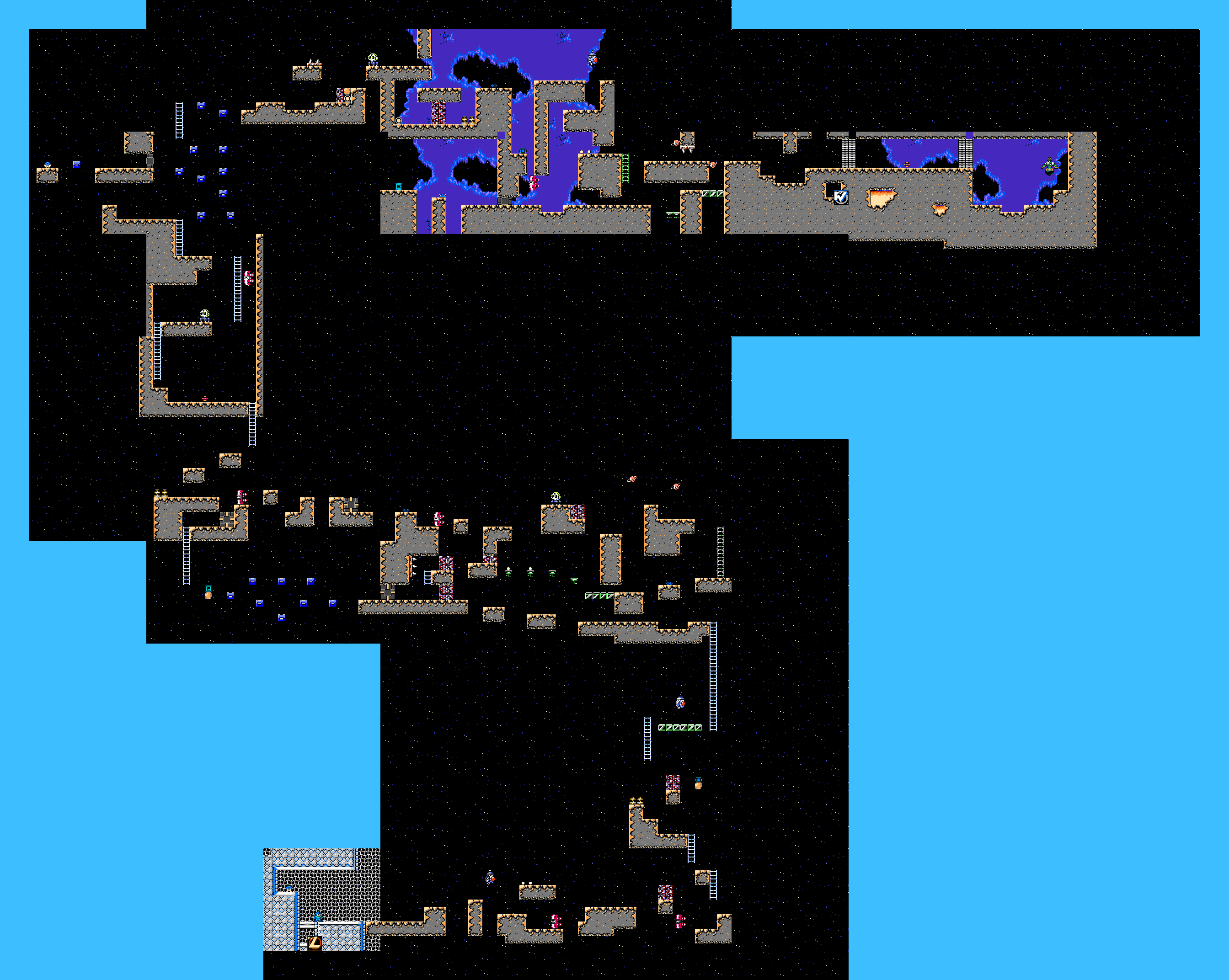 I didn't really get the idea of the first room, but I guess we're exiting some sort of Dr. Light space base at the start? That's a really cool concept!! Maybe spending some more time there before going out into the space rocks would make the idea land better. Hopefully with a better background too, because the chaotic appearance of the nets with those tiles really didn't make a good first impression.